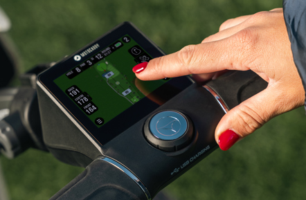 In addition, golfers benefit from significantly upgraded, next-generation high resolution full hole mapping, incorporating a dynamic green view, front, middle and back distances, drag-and-drop target planning, hazard information, smartphone notifications, and lifetime GPS mapping, all conveniently integrated into the trolley handle.