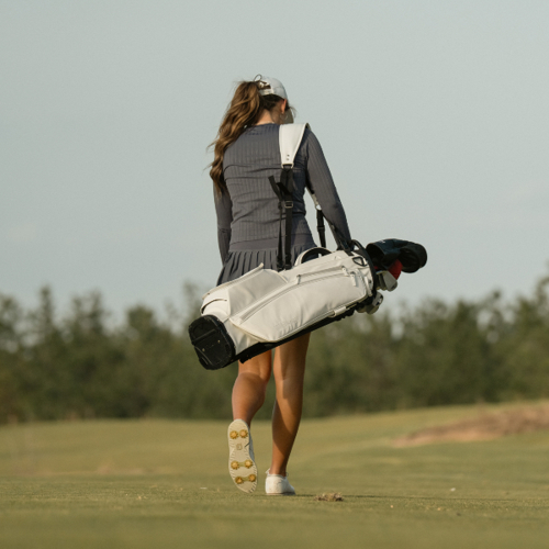 Thoughtfully designed for superior organisation and comfort, its plush microfiber-lined top with PU leather cushioning protects clubs while maintaining a clean, sophisticated aesthetic. A reinforced integrated top and durable carbon fibre legs ensure stability and long-lasting performance round after round.